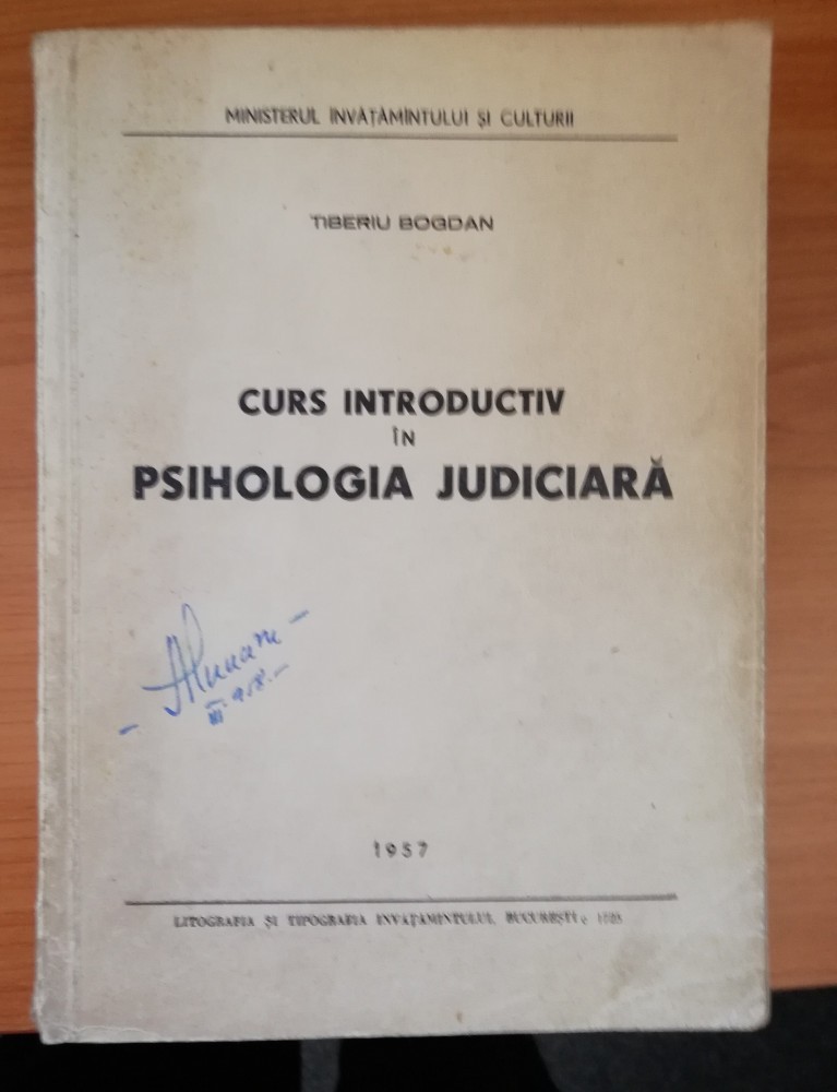 Curs introductiv in psihologia judiciara - Tiberiu Bogdan, Litografia și tipografia invatamantului, Bucuresti, 1957