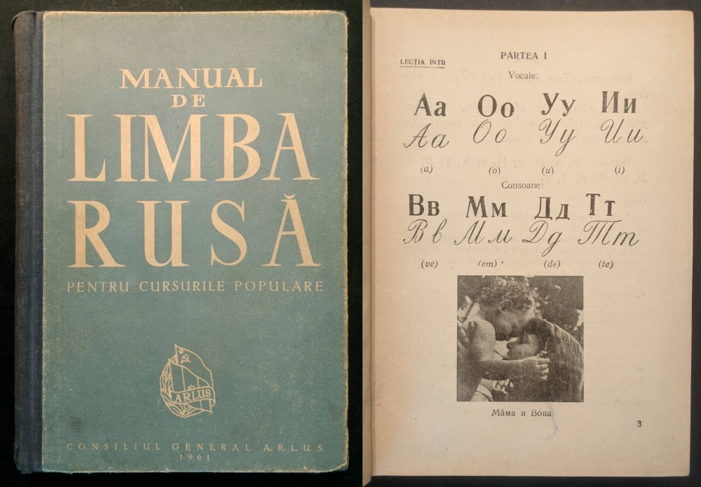 Curs MANUAL de invatat LIMBA RUSA cu o sectiune tip ABECEDAR, GRAMATICA, VOCABULAR 748 pag ilustrata 1961 Consiliul General ARLUS Cartonat, utilizat