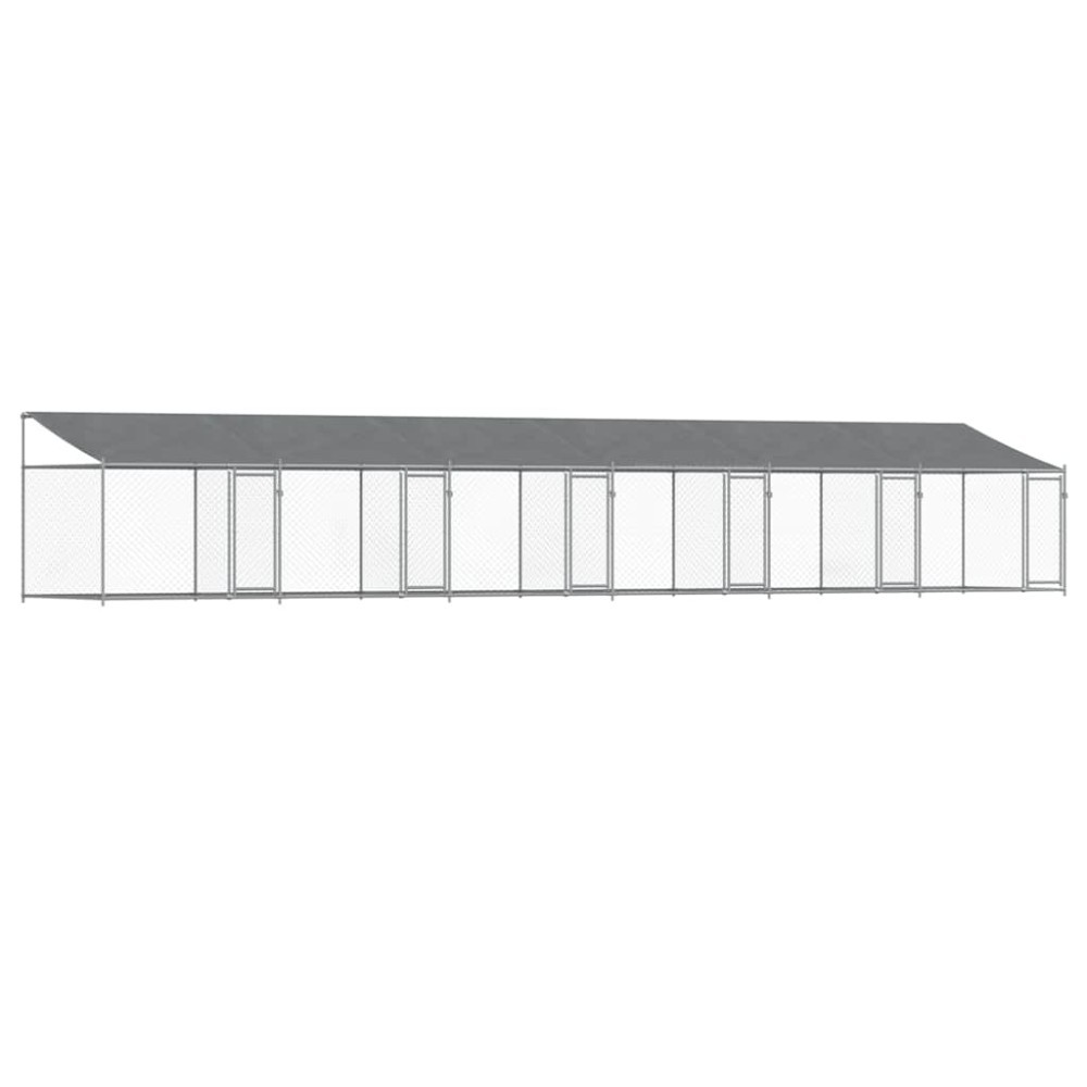 Cusca caini cu acoperis si usi, gri, 12x2x2 m, otel galvanizat
