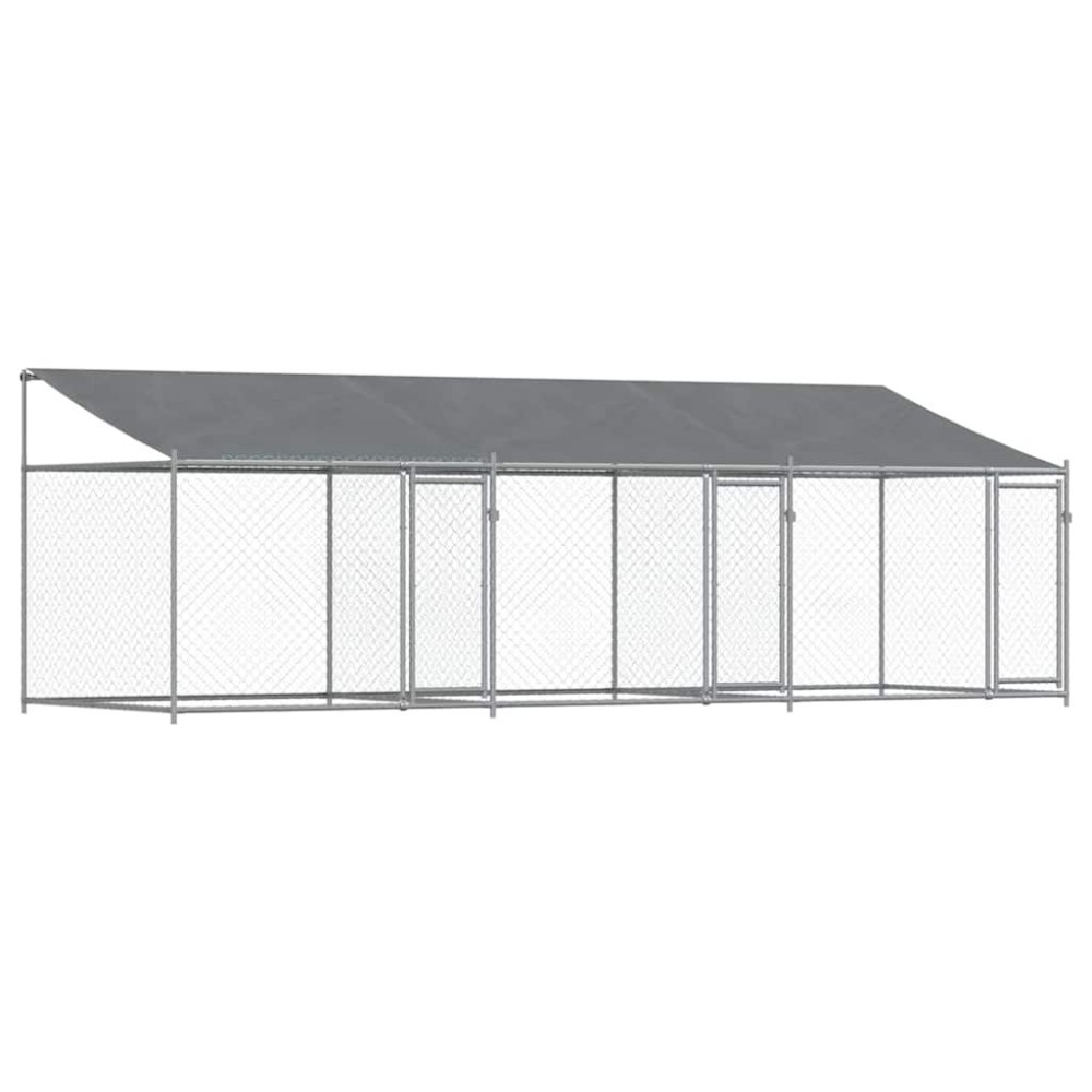 Cusca caini cu acoperis si usi, gri, 6x2x2 m, otel galvanizat