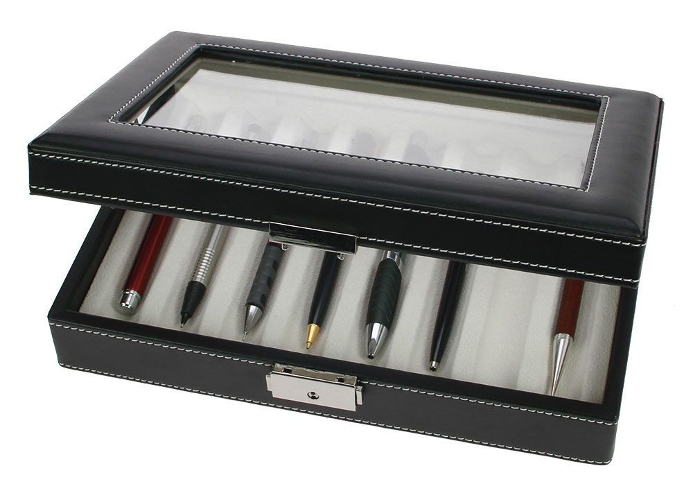 SAFE ALBUMS W73627 Cutie captusita pentru instrumente de scris Capacul are geam de sticla. Fabricat din material frumos, granulat de piele, cu cusaturi decorative lucrate manual Interior captusit cu catifea de culoare fildes. Cu compartimente pentru 8 pixuri. Incuietoare, 2 chei. Dimensiuni: Aproximativ 266 x 180 x 64 mm.