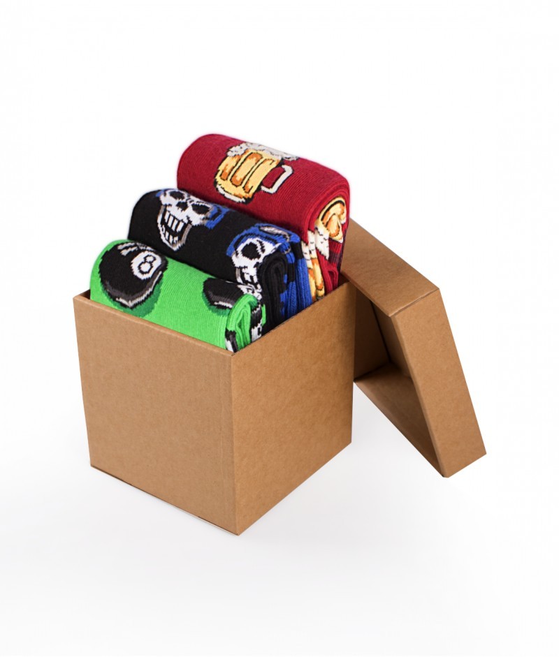 Cutie cu 3 perechi de șosete din bumbac Rock - Craniul, 8 bile, Bere 35-38