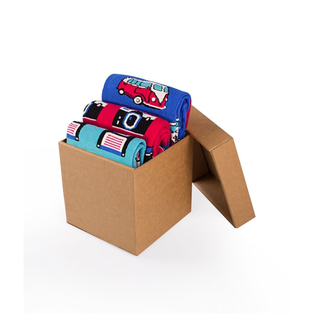 Cutie cu 3 perechi de șosete retro din bumbac - Floppy Disk, Camera, Bus 35-38