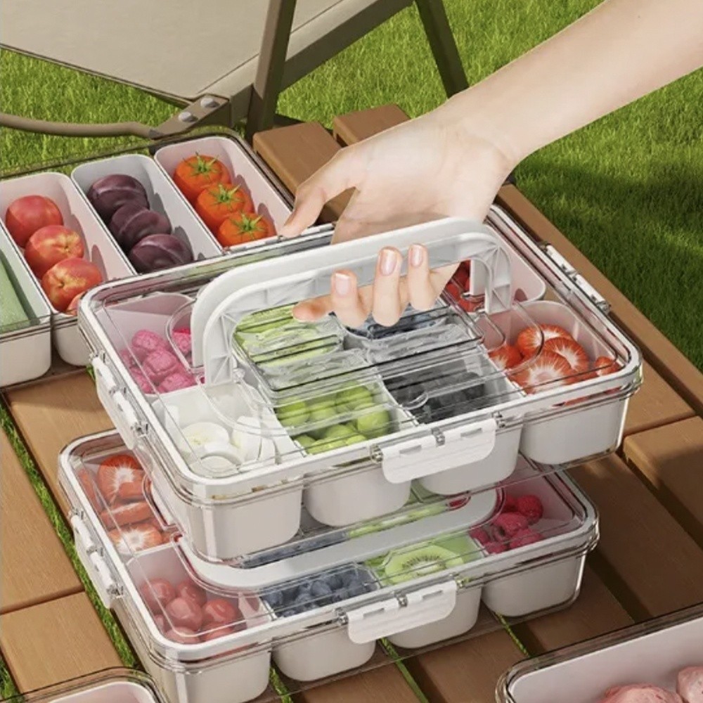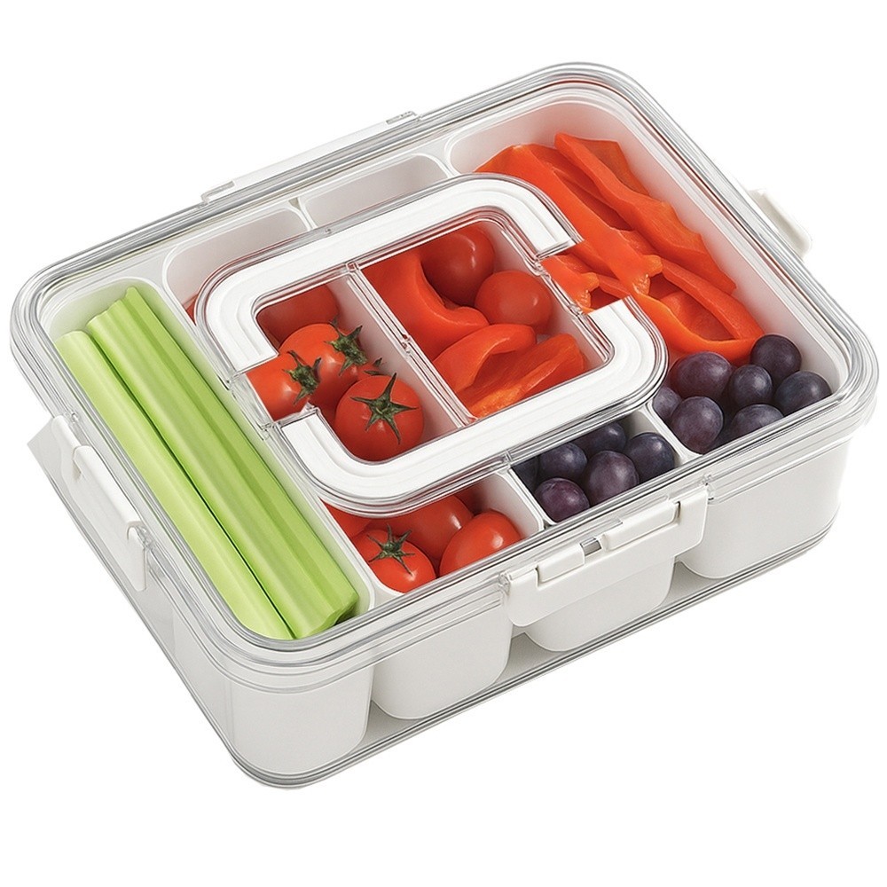 Cutie depozitare mancare pentru frigider cu capac etans si 4 compartimente detasabile, Pufo, 32 x 25 cm