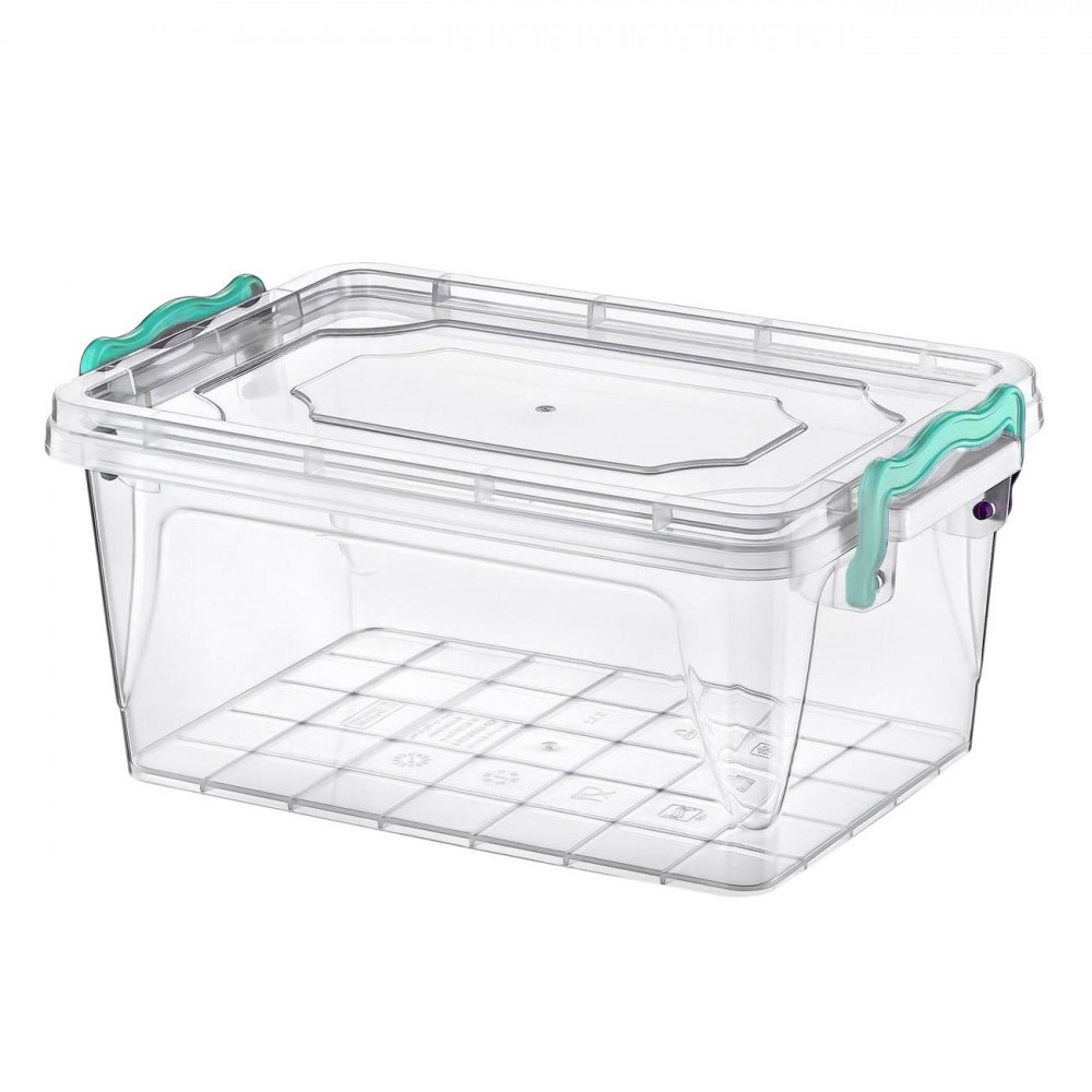 Cutie Depozitare Plastic, Capacitate 3L, Transparentă, Manere Verzi
