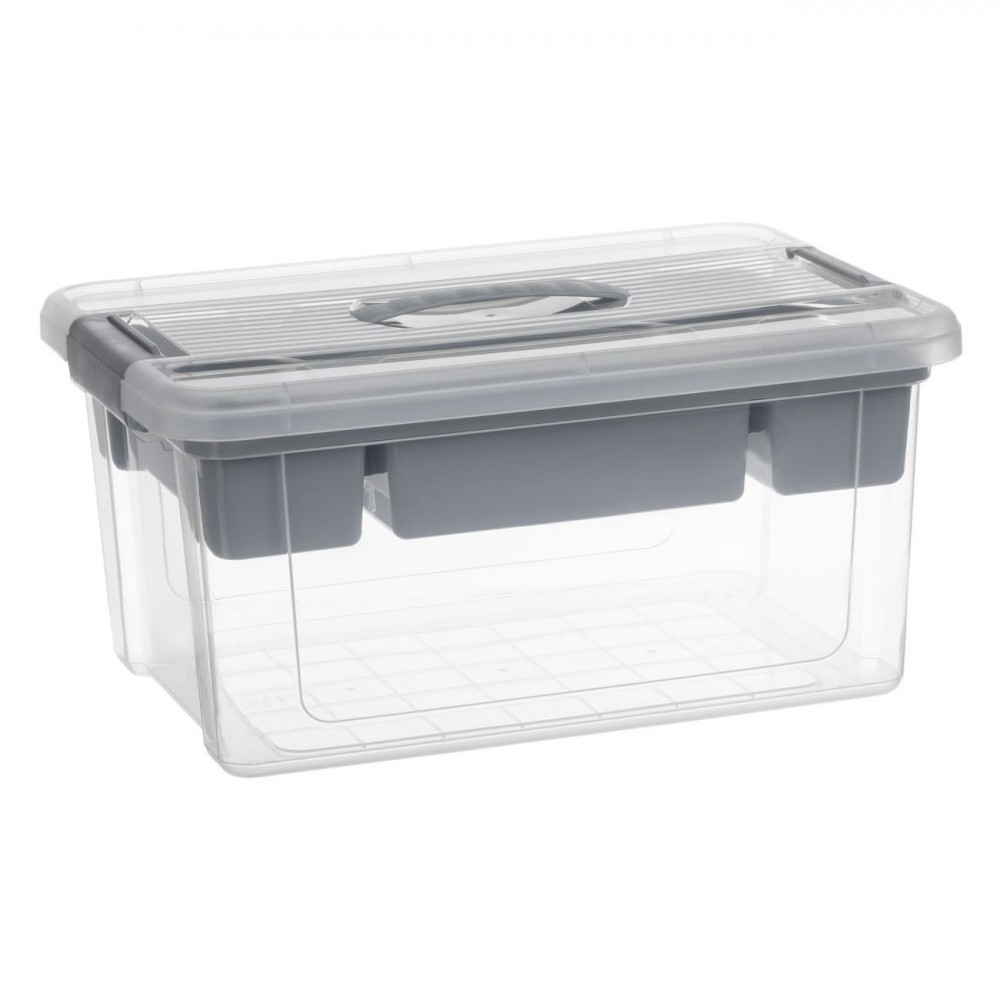 Design Inteligent: Cutia Organizer Transparentă cu Raft Gri este soluția ideală pentru organizarea eficientă și elegantă a tuturor obiectelor tale esențiale. Fabricată din plastic transparent, această cutie îți oferă o vizibilitate clară asupra conținutului său în orice moment. Compartimentare Versatilă: Dispune de un raft detașabil cu compartimente multiple: un compartiment mare de 38x25x6.5 cm, două compartimente de 26x8.5x6.5 cm și două compartimente de 20x12x11 cm. În partea de jos, când raftul este folosit, măsoară 36x24x9 cm. Acest aranjament îți permite să sortezi și să depozitezi cu ușurință articole precum unelte, bijuterii, articole de artizanat sau de pictură. Capacitate și Dimensiuni: Cu o capacitate spațioasă de 16 litri și dimensiuni de 41x29x20 cm, cutia este suficient de mare pentru a include o varietate de obiecte, dar suficient de compactă pentru a se potrivi în spații mai mici. Funcționalitate Practivă: Este perfectă pentru utilizare acasă, în birou, în mașină sau chiar la camping. Cu un design robust și un capac cu închidere și mâner, transportul și accesul la lucrurile depozitate devine un proces simplu și sigur. Culori Neutrale și Elegante: Combinând transparența cu accente gri, se integrează perfect în orice decor, adăugând un plus de stil și organizare locuinței tale. Această cutie este alegerea ideală pentru cei care apreciază ordinea și eficiența în organizare, indiferent de locație sau activitate.