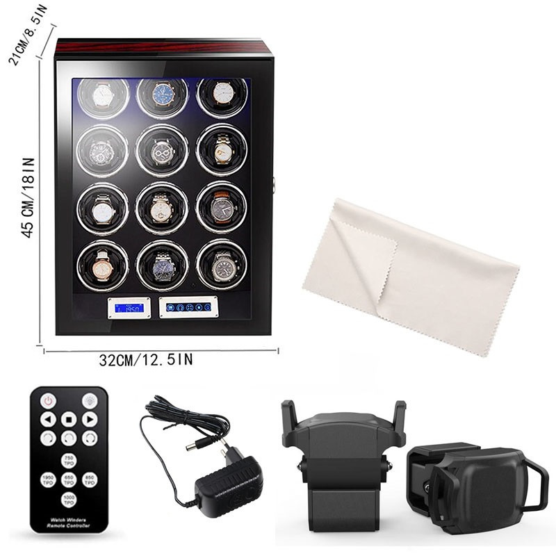 Cutie intors ceasuri automatice cu amprenta iUni, Luxury Watch Winder 12, Mahon-Negru