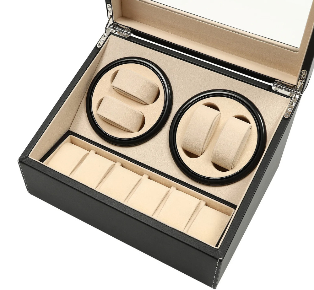 Cutia de intors ceasuri, cunoscuta si sub denumirea de watch winder, este un dispozitiv elegant si util conceput pentru a pastra ceasurile automate in miscare si functionale atunci cand nu sunt purtate.