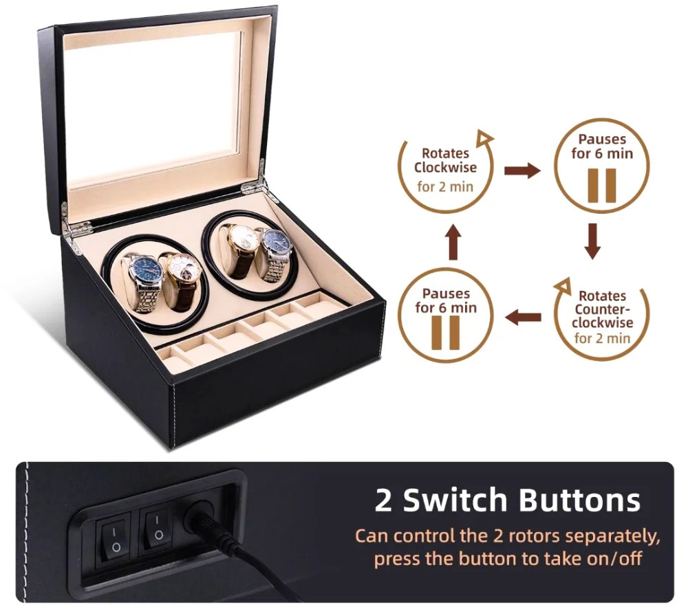 Watch winder-ul foloseste materiale antimagnetice, va mentine ceasul automatic precis in fiecare zi, fara alte erori.