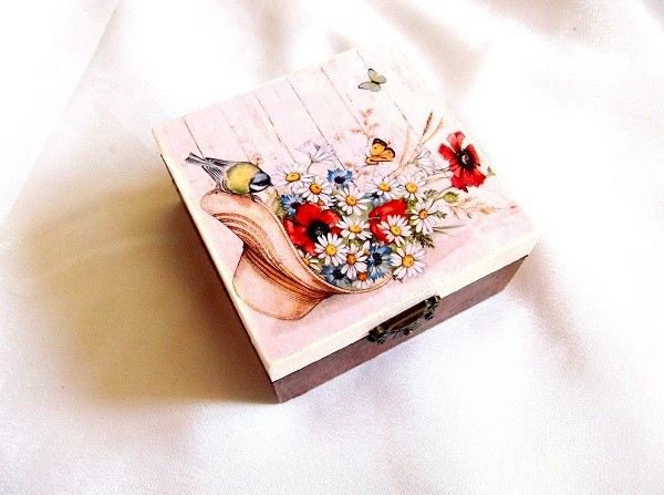 cutie lemn decorata cu tehnica decupajului , pictata si lacuita