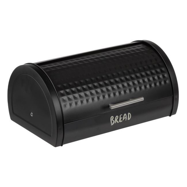 Cutie pentru paine, metalica de culoare neagra, cu usa glisanta, si maner metalic argintiu. Va ajuta sa pastrati produsele de panificatie proaspete si bancul bucatariei curat.
