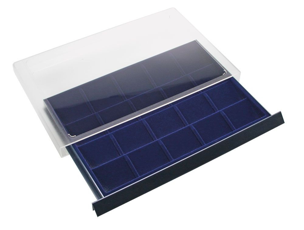Cutie monede sertar in etui acrilic cu tava in catifea albastra pentru 40 monede de 38 mm - Nova-Big 40 x 38mm