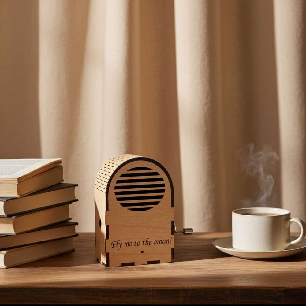 Cu un design elegant si sunete armonioase, aceasta cutie muzicala este ideala pentru a adauga un plus de farmec oricarei incaperi. Caracteristici principale: Material Premium: Realizata din materiale de calitate superioara, lemn fin si un mecanism durabil. Melodii Incantatoare: Bella Ciao , Lacul lebedelor, Fur Ellise , Dunarea albastra Dimensiuni : L:10cm/l:7cm/h:4cm Personalizare Disponibila: Optiuni de personalizare pentru a crea un cadou unic si memorabil. Beneficii Estetica Eleganta: Adauga un element sofisticat si atragator oricarui interior. Nostalgie si Magie: Sunetele melodioase aduc amintiri frumoase si creeaza o atmosfera calda si primitoare. Versatilitate: Potrivita pentru diverse stiluri de decor si ocazii speciale. Cadou Ideal: Perfecta pentru aniversari, nunti, botezuri sau orice alta ocazie speciala. Recomandari pentru Utilizare Cutiile muzicale sunt ideale pentru: Decor Interior: Potrivite pentru sufragerie, dormitor, birou sau chiar holuri. Locuri Publice: Excelente pentru decorarea cafenelelor, restaurantelor sau birourilor. Cadouri: O idee de cadou deosebita pentru aniversari, nunti, botezuri si alte ocazii speciale. Intrebari Frecvente (FAQ) Cum functioneaza cutia muzicala? Cutia muzicala functioneaza prin rotirea unui mecanism manual Ce melodii sunt disponibile? Bella Ciao , Lacul lebedelor , Fur Ellise, Dunarea albastra . Este posibila personalizarea cutiei muzicale? Da, oferim optiuni de personalizare pentru a crea un cadou unic si special. Adu magie si eleganta in casa ta cu o cutie muzicala de la GRAVARELASER. Comanda acum si surprinde-ti cei dragi cu un cadou de neuitat!