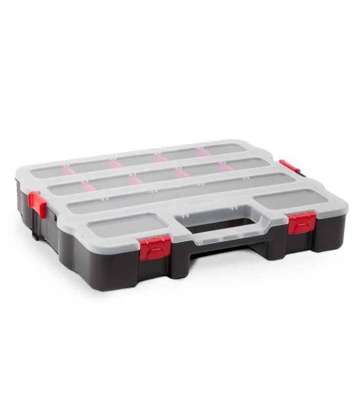 Cutie organizatoare 373x470x80 mm HANDY. Genți inovatoare de organizare care pot fi conectate în orice ordine, astfel încât să poată fi transportate cu ușurință în același timp. Zăvorul lateral vă permite să deblocați cutiile, oferindu-vă acces rapid la materialul auxiliar de care aveți nevoie. Datorită capacului transparent, conținutul este transparent, puteți găsi punga de care aveți nevoie fără a o deschide. Organizați șuruburile, diblurile, șaibele, piulițele și dispozitivele ajutătoare de montare de diferite dimensiuni și tipuri în saci separați pentru o muncă rapidă și eficientă. Lăzile sunt fabricate din plastic durabil și puternic, astfel încât acestea au o durată lungă de viață. Practic, deoarece pot fi create până la 18 compartimente de depozitare folosind separatoare mobile. Când nu utilizați separatoarele opționale, pot exista 2 compartimente mari de depozitare în care puteți plasa o șurubelniță, o cheie sau altă unealtă. Fabricat din plastic puternic Mai multe piese pot fi stivuite una peste alta Mâner confortabil Suprafețe antiderapante Dimensiune sac: 373 x 470 x 80 milimetri Număr de compartimente: 9 - 18 buc Dimensiunea diafragmei: 85 x 80 milimetri Separatoare opționale: 8 buc Material: Plastic Greutate: ~1120 g.