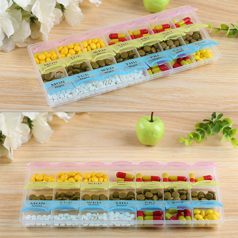 Cutie organizator Pufo pentru medicamente, vitamine sau suplimente pe saptamana cu trei compartimente pe zi