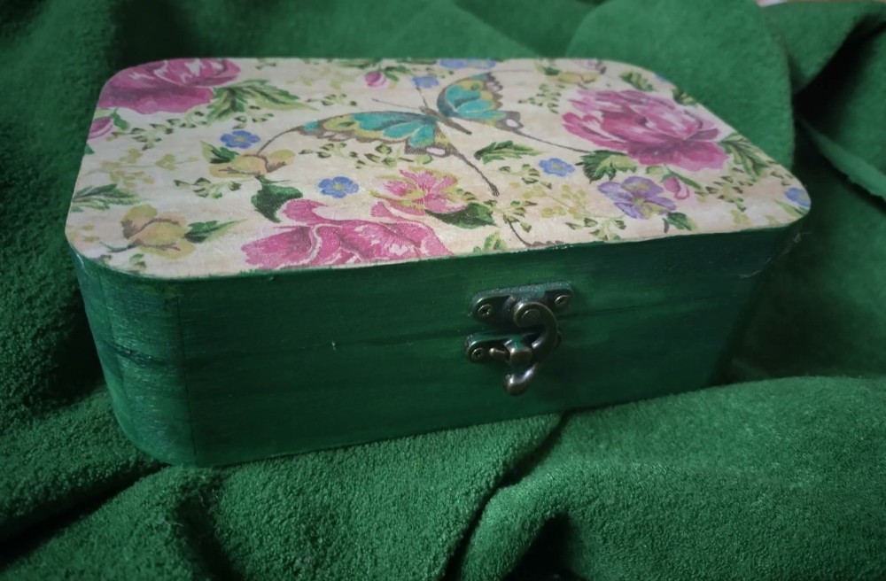 Cutie lucrata manual din lemn, cu tehnica șervețelului.