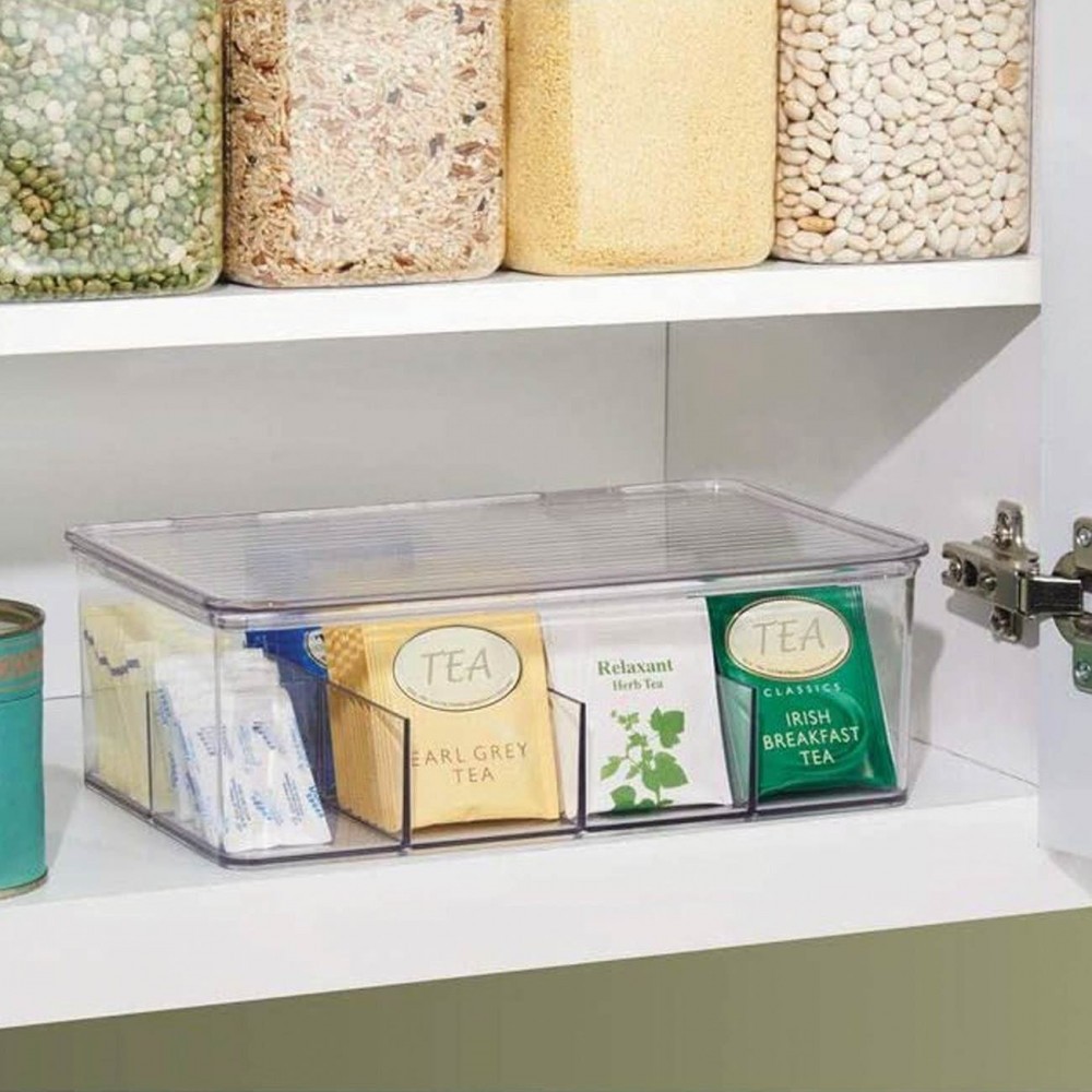 Cutie Plastic Organizatoare Ceai, Model 3 Compartimente, Capacitate 21x14.5x8.5 cm, Transparent