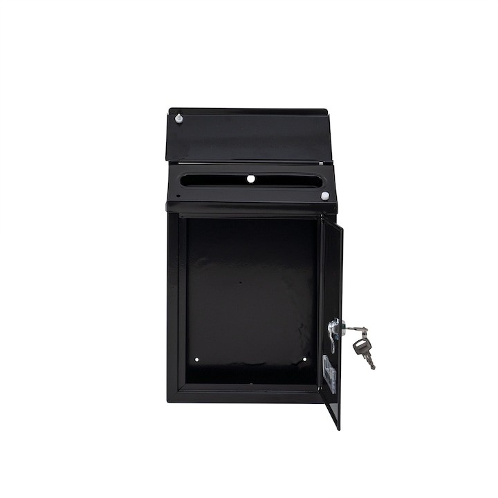 Cutie postala metalica, dimensiuni 21.7x7x30cm, cu deschidere frontala si cheie, montare pe perete, negru
