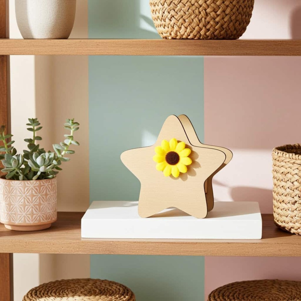 Cutie Stea pentru Flori - Cadoul Perfect pentru Aranjamente Florale |GRAVARELASER Cutia stea pentru flori este accesoriul perfect pentru a transforma orice aranjament floral intr-o opera de arta. Cu un design unic si elegant, aceasta cutie adauga un plus de rafinament si este ideala pentru a face un cadou memorabil. Dimensiunea interioara a cutii 6.4cm x 6.8cm si o inaltime de 6.5 cm Design si Caracteristici Forma Unica: Cutia in forma de stea se remarca prin designul sau deosebit, care adauga un element surpriza oricarui aranjament floral. Materiale de Calitate: Fabricata din materiale durabile si rezistente, aceasta cutie este potrivita pentru diverse tipuri de flori, asigurandu-le protectia necesara. Dimensiuni si Culori: Disponibila intr-o varietate de dimensiuni si culori, pentru a se potrivi perfect cu orice tip de flori sau tematica a evenimentului. Utilizari si Ocazii Cadouri deosebite: Ofera aceasta cutie stea pentru flori ca un cadou special pentru zile de nastere, aniversari, sau alte ocazii importante. Evenimente festive: Ideala pentru decorarea meselor la nunti, botezuri sau alte evenimente festive, adaugand un strop de eleganta si stil. Aranjamente florale pentru acasa: Imbunatateste aspectul locuintei tale cu aranjamente florale spectaculoase in aceasta cutie decorativa. Personalizare si Optiuni Personalizare: Poti alege sa personalizezi cutia cu un mesaj special, un logo sau un design care sa se potriveasca perfect cu evenimentul sau persoana careia ii este destinata. Accesorii: Adauga elemente suplimentare precum panglici, etichete personalizate sau alte decoratiuni pentru a face cutia si mai speciala. Avantajele Cutiei Stea pentru Flori Eleganta si rafinament: Designul unic in forma de stea adauga un element de surpriza si eleganta fiecarui aranjament floral. Durabilitate: Fabricata din materiale de calitate, cutia este rezistenta si poate fi reutilizata pentru diverse aranjamente florale sau alte scopuri decorative. Versatilitate: Potrivita pentru o gama larga de ocazii, de la cadouri personale la decoruri de evenimente. Intrebari Frecvente (FAQ) Ce dimensiuni sunt disponibile pentru cutia stea? Cutia stea pentru flori este disponibila in mai multe dimensiuni, potrivite pentru diverse tipuri de aranjamente florale, de la buchete mici la compozitii mai mari. Se poate personaliza cutia? Da, oferim optiuni de personalizare pentru a adauga un mesaj sau un design unic care sa faca cutia si mai speciala. Care este termenul de livrare pentru o cutie personalizata? Livrarea dureaza intre 2 si 3 zile lucratoare, in functie de complexitatea personalizarii si de locatia de livrare. Comanda acum cutia stea pentru flori si transforma orice aranjament floral intr-un cadou memorabil!
