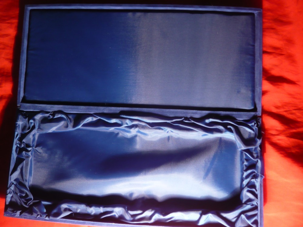 Cutie veche ,lemn si catifea albastra- pt. argintarie , dim. 35,7 x 15,6 x 3,1 cm