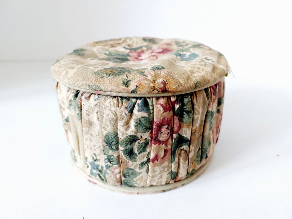 Cutie veche pentru ace, ate si nasturi, vintage, carton imbracat in textil