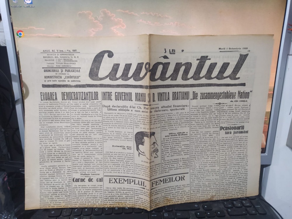 Director Nae Ionescu. Marți 1 octombrie. 4 pagini.