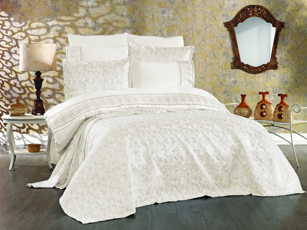 Cuvertură de pat Valentini Bianco din brocard, Zehra Ecru