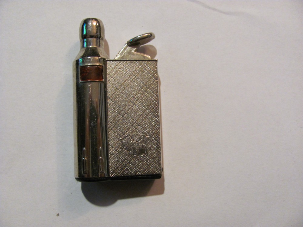 Bricheta "No NAME" - metal alb & plastic tare; functionala, dar nu (mai) are gaz; dimensiuni maxime: 30 mm x 60 mm x 10 mm; 35 g; stare buna, estetica frumoasa (foto); folosita, insa cu moderatie; articolul nu prezinta vreun marcaj.