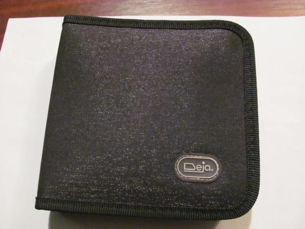 Mapa / Husa marca DEJA pentru depozitarea a 24 CD-uri ori DVD -uri etc - material textil (negru); desigilata, dar nefolosita; dimensiuni mapa: 15,50 cm x 15,50 cm x 4 cm; este prevazuta si cu agatatoare, din acelasi material textil; stare foarte buna, estetica foarte frumoasa.