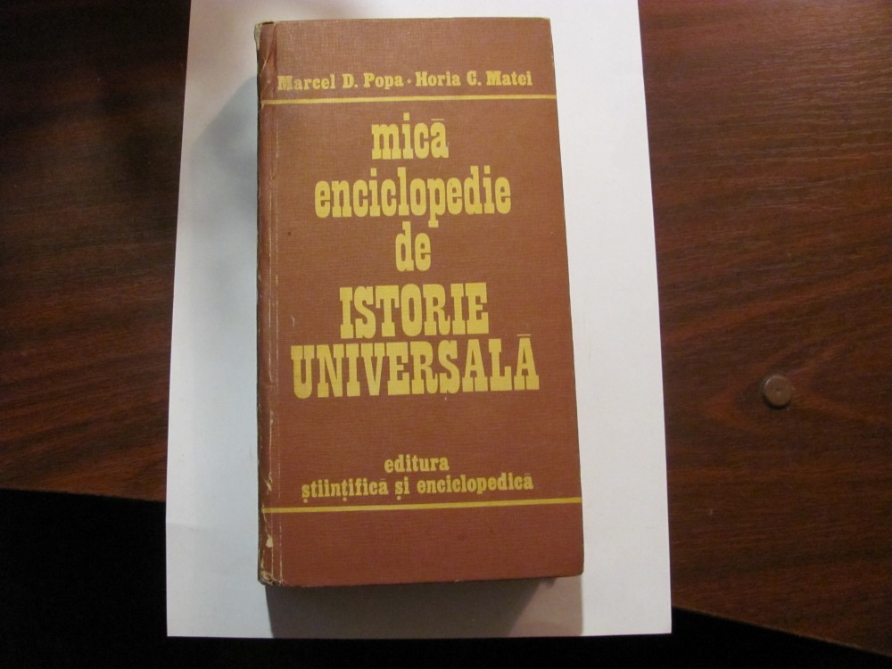 Marcel D. POPA & Horia C. MATEI "Mica Enciclopedie de ISTORIE UNIVERSALA" - cartonata; format mediu, pe inalt; groasa; stare foarte buna, estetica foarte frumoasa (foto); 744 pagini; Editura STIINTIFICA si ENCICLOPEDICA, 1983, Bucuresti.