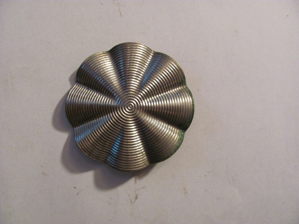 Nasture, interbelic, pentru palton dama / femeie - alama argintata; diametru: 5,50 cm; 15 g; stare foarte buna, estetica frumoasa, cu cateva pete de oxidare; articolul nu prezinta vreun marcaj.