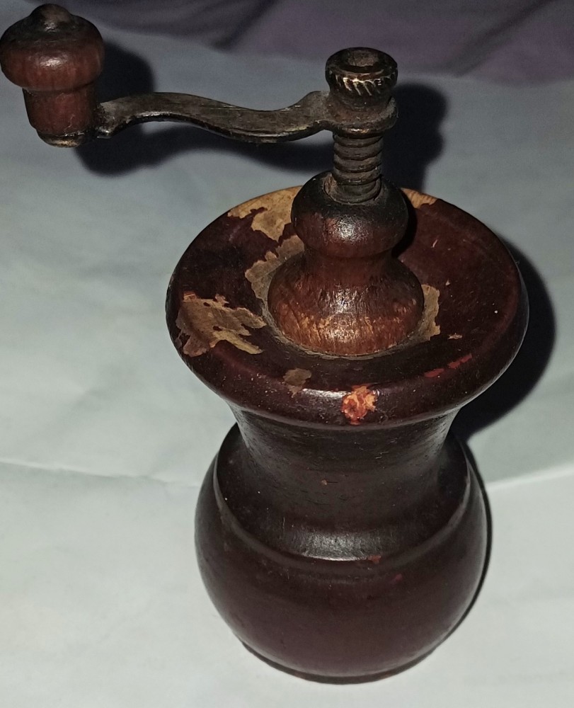 CY - Rasnita Moara mai veche de dimensiuni mici pentru condimente / perfect functionala / H: 9,50 cm / decor sau folosinta / fara marcaje