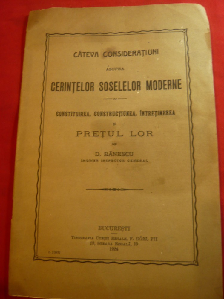 D.Banescu -Consideratii cerinte Sosele Moderne - Ed.1924 ,Ed.Gobl ,32 pag