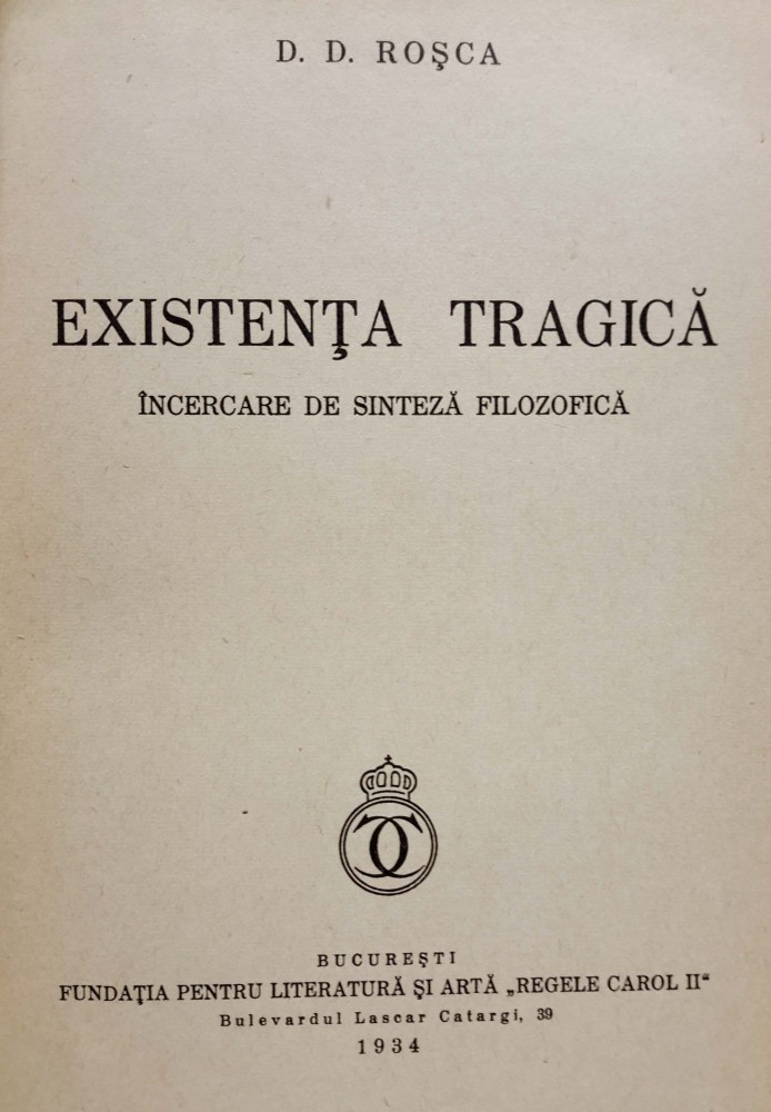 D.D. Rosca, EXISTENTA TRAGICA, Bucuresti, 1934