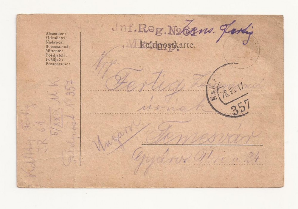 D2 Carte Postala Militara k.u.k. Imperiul Austro-Ungar ,1917, Temesvar