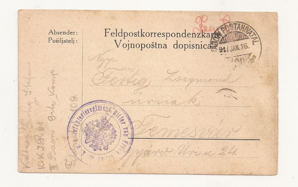 D3 Carte Postala Militara k.u.k. Imperiul Austro-Ungar ,1917 Temesvar, Timisoara