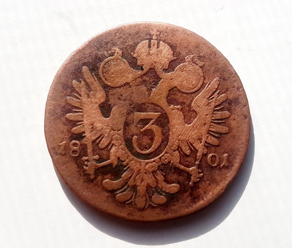 D353- Moneda 3 Kreutzer 1801 bronz-Imp Habsburg Franciscus II. Diametrul 3 cm.