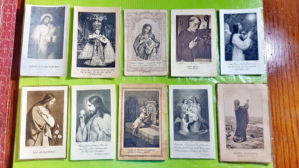 D922-SANTINI-10 Semne carte vechi crestine deosebite anii 1900 lito alb-negru. Marimi in general peste 11/7 cm. Stare buna.