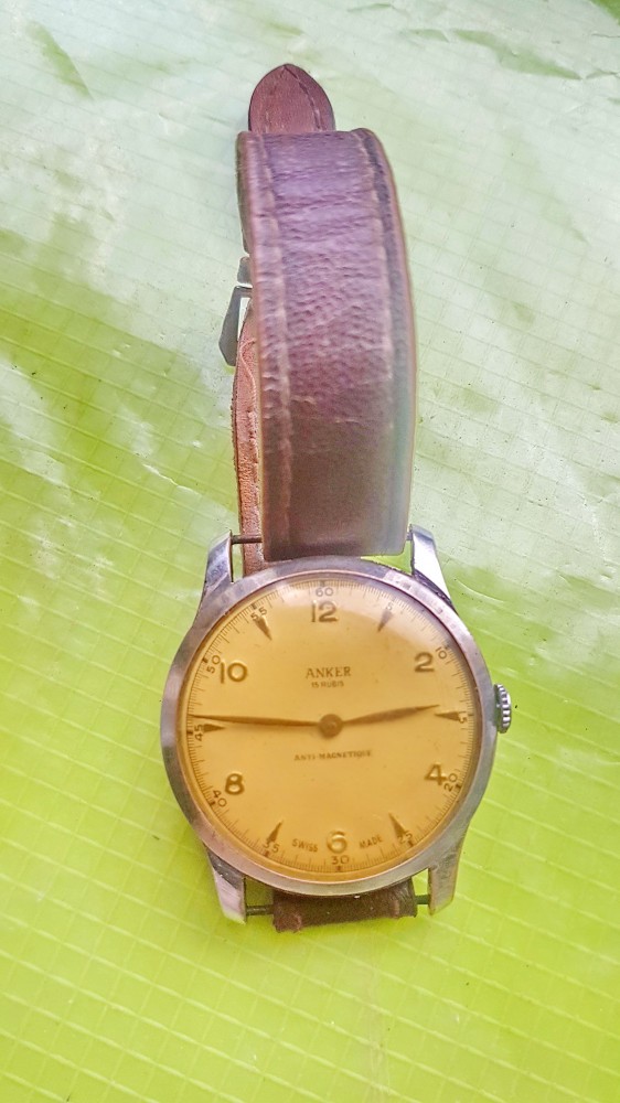 D959-I-Ceas mana vechi ANKER 15 Rubine Antimagnetic Swiss barbat nefunctional.