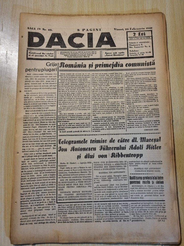 Dacia 20 februarie 1942-planul cu asasinarea lui hitler,scrisoarea lui antonescu
