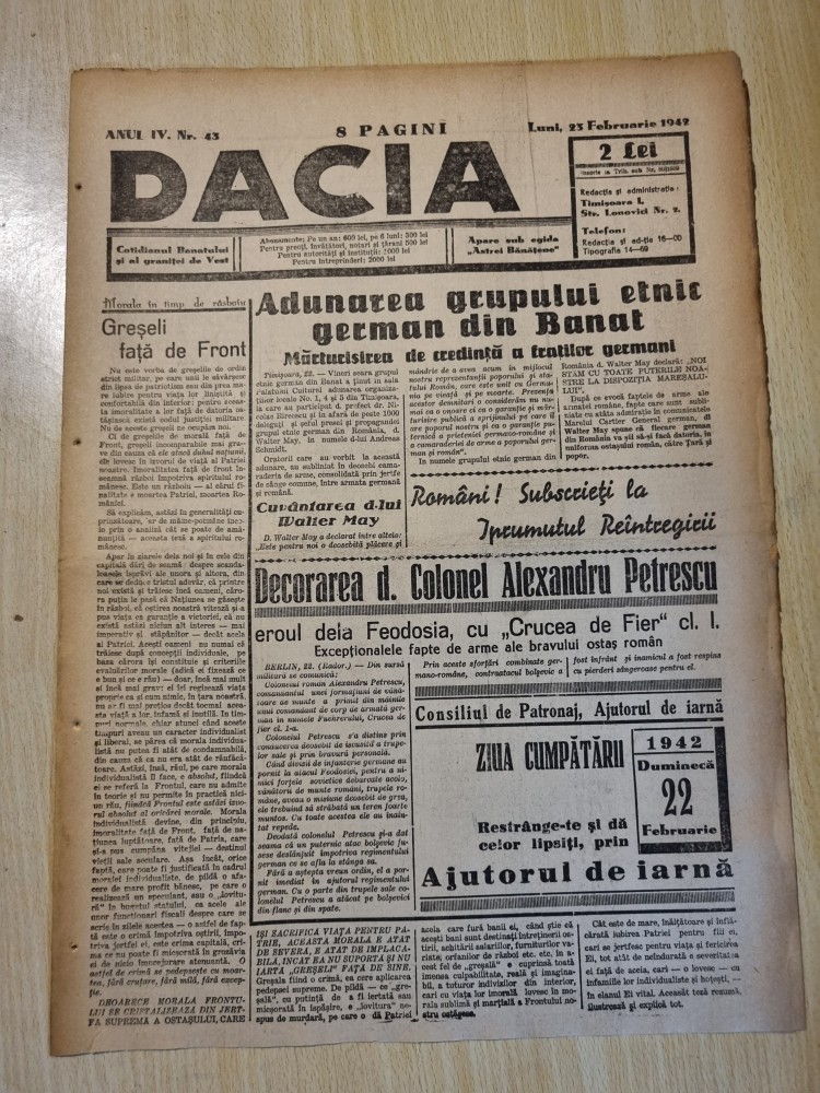 Dacia 23 februarie 1942-stiri al 2-lea razboi mondial,grupul etnic german banat