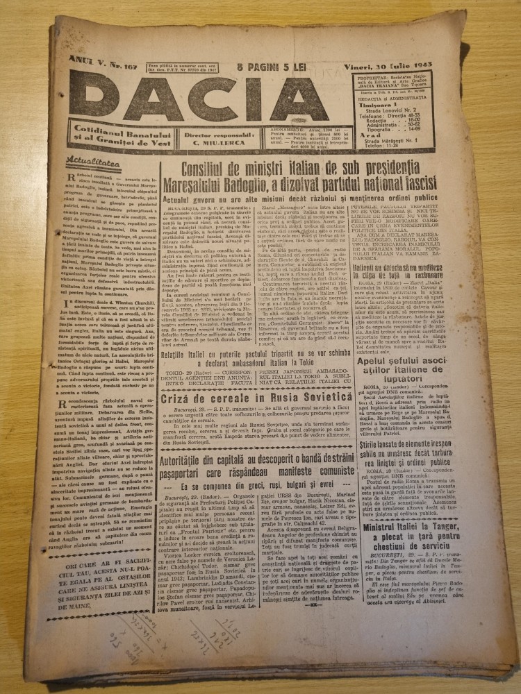 Dacia 30 iulie 1943-stiri al 2-lea razboi mondial,eminescu vazut de t. arghrzi