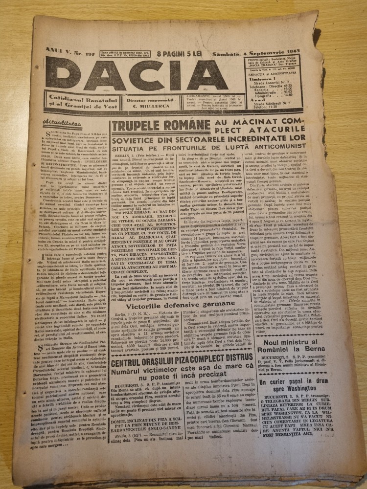 Dacia 4 septembrie 1943-art. arad,severin,stiri al 2-lea razboi mondial