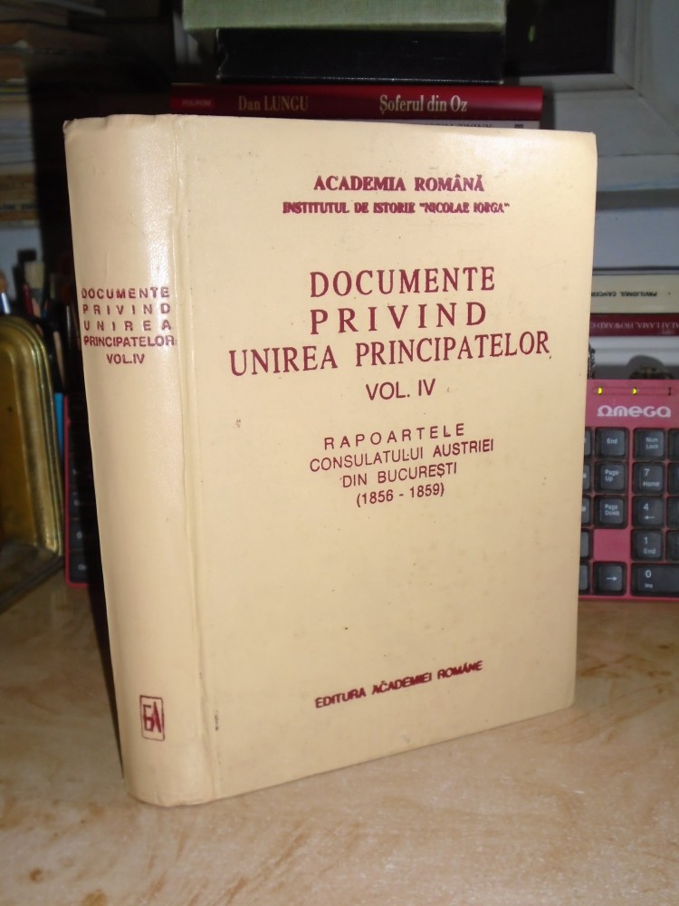 EDITURA ACADEMIEI ROMANE , 1997 , CULEGEREA DOCUMENTELOR,STUDIUL INTRODUCTIV,REZUMATELE SI INDICELE DAN BERINDEI - COPERTILE CARTONATE - FORMAT DE MANUAL - 673 PAGINI - STARE BUNA - VOLUMUL PATRU DIN ''DOCUMENTE PRIVIND UNIREA PRINCIPATELOR''.