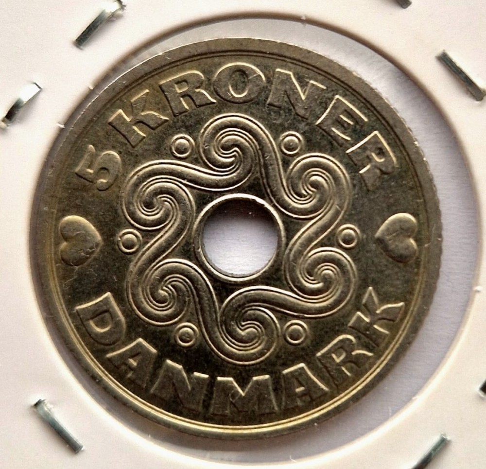 Danemarca 5 Kroner 2002 coroane km # 869 moneda din nichel Margrethe II