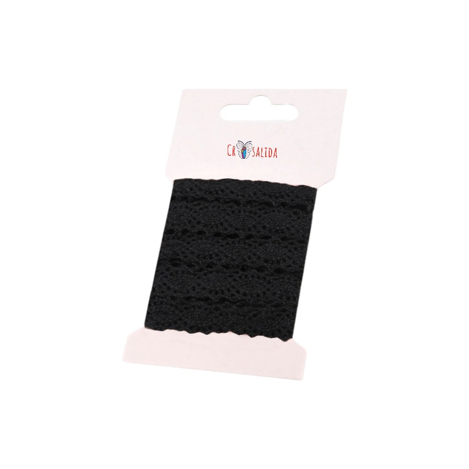 Dantela bumbac crosetata Crisalida, 12 mm x 3 m, Negru