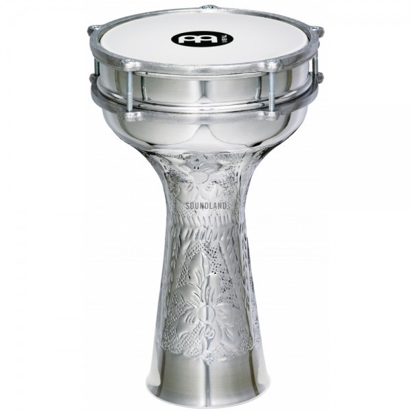 Darbouka Meinl in stil turcesc, cu basi profunzi si inalte percutante, pe corp de aluminiu batut manual si cu membrana sintetica. Include cheie de acordare.