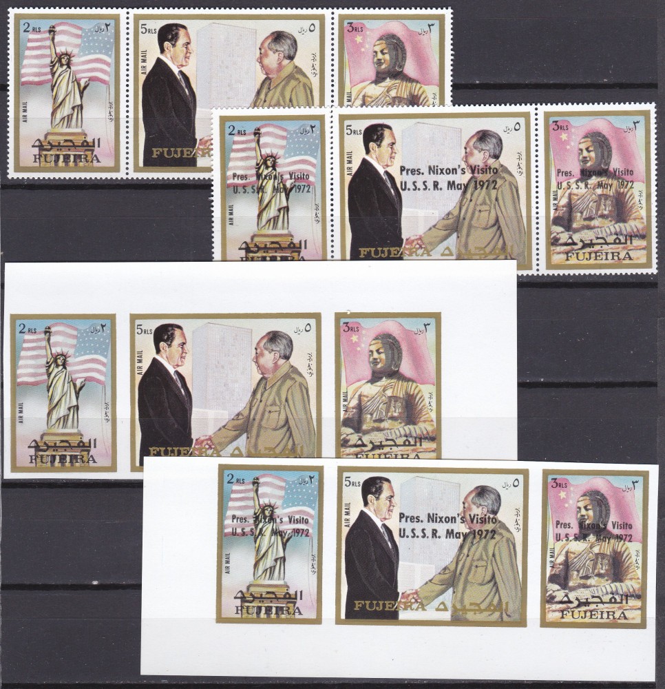 DB1 Fujeira Vizita Nixon in China Mao + Supratipare URSS 12 v. Dt + NDT MNH
