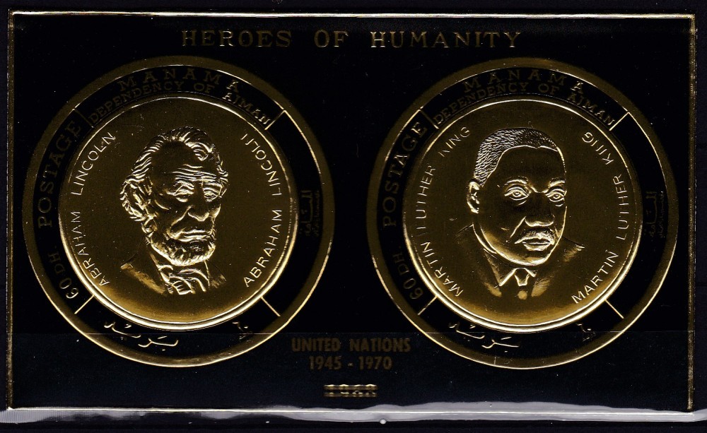 <p>Manama 1970 ONU Lincoln M. Luter King 1 v. foita aur MNH I