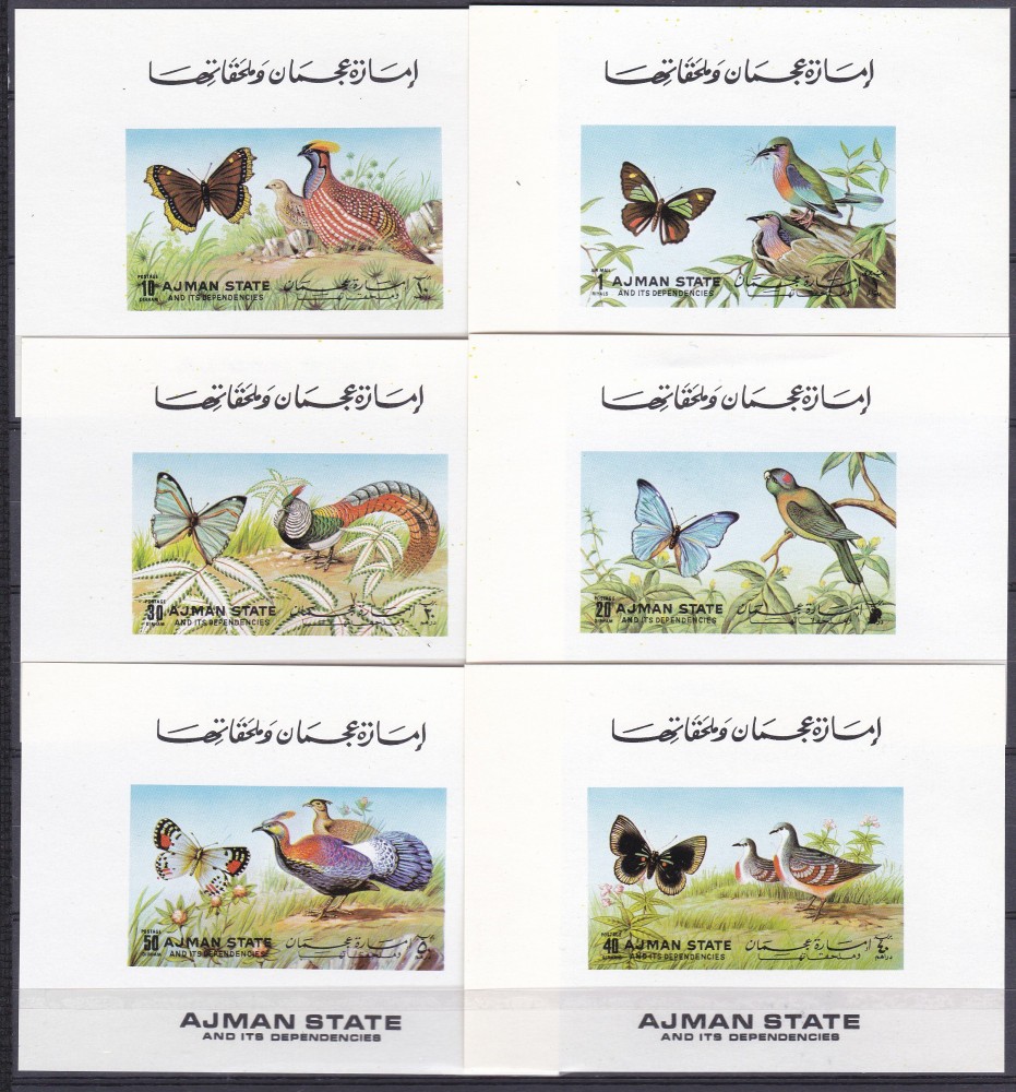 DB1 Pictura Ajman Fauna Pasari Fluturi 6 SS de lux MNH